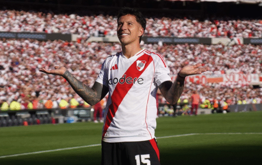 Driussi festeja ante su gente el gol de la victoria River Plate se quedó con el Superclásico tras derrotar 2-1...