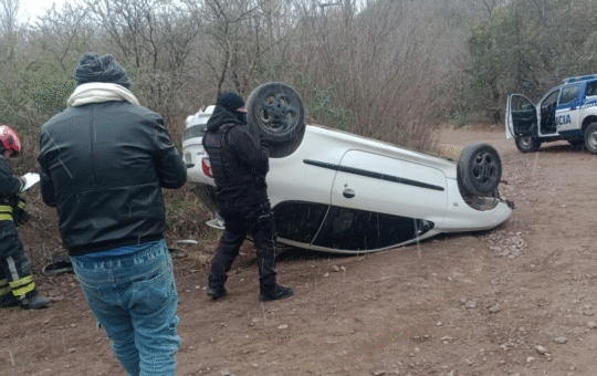 El auto volcado (gentileza laestafetaonline) Una familia cordobesa protagonizó un accidente vial este fin de semana mientras circulaba por un...